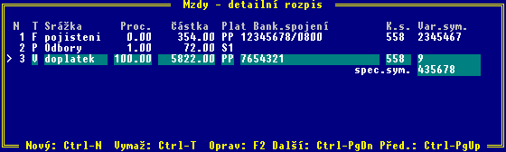 Pozn.: Mezerníkem můžete do záznamu doplnit libovolnou poznámku pro Vaši potřebu. První řádek poznámky se tiskne na mzdovém listě. Vyplnění poznámky ukončíte Ctrl-W.